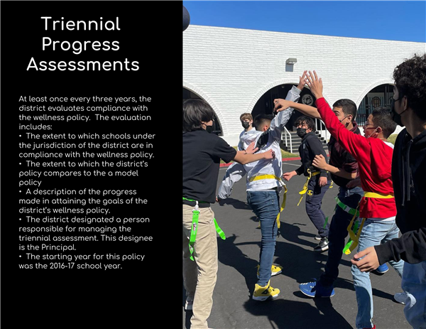 - At least once every three years, the district evaluates compliance with the wellness policy.